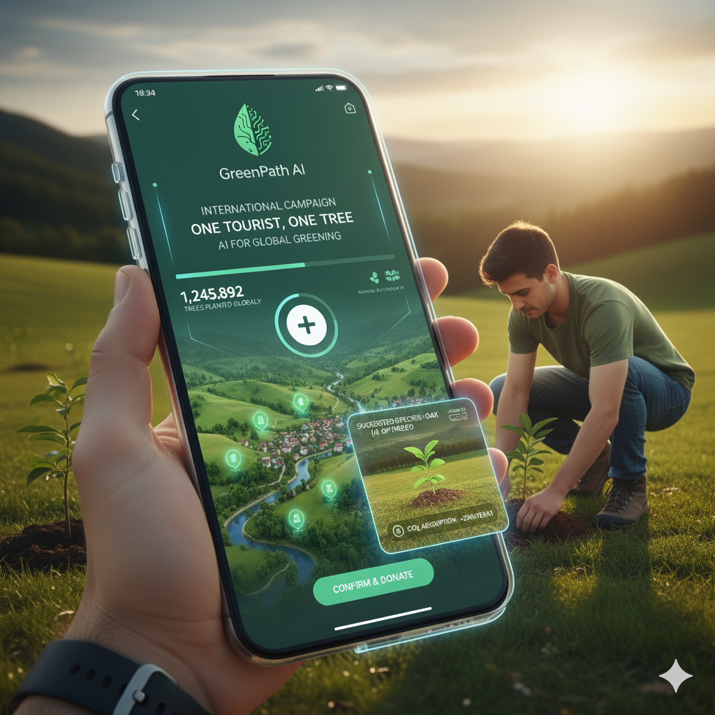 یک اپلیکیشن موبایل که با هوش مصنوعی کار میکند و به گردشگران اجازه میدهد تا در حین سفر، محلهای مناسب برای کاشت درخت را پیدا کنند، گونه درخت مناسب را انتخاب کنند و حتی هزینههای مربوط به کاشت و نگهداری را پرداخت کنند.